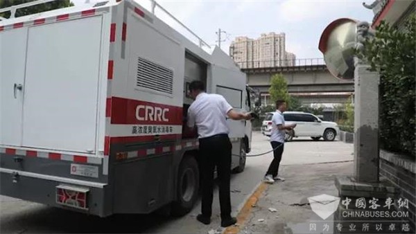 “目前,我们共组织了五个应急小组,每天早上7:00开始,到下午18:30左右,全天协助洗扫、消杀作业。”参与此次支援的中车电动售后工程师吴缘义介绍。