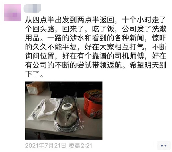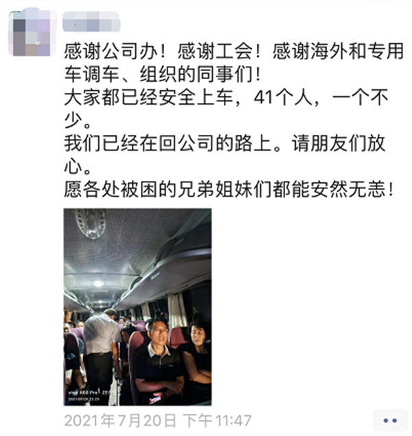 图 | 被困郑州3号地铁站内的宇通员工