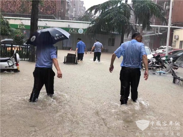 淋着暴雨奔走的宇通人