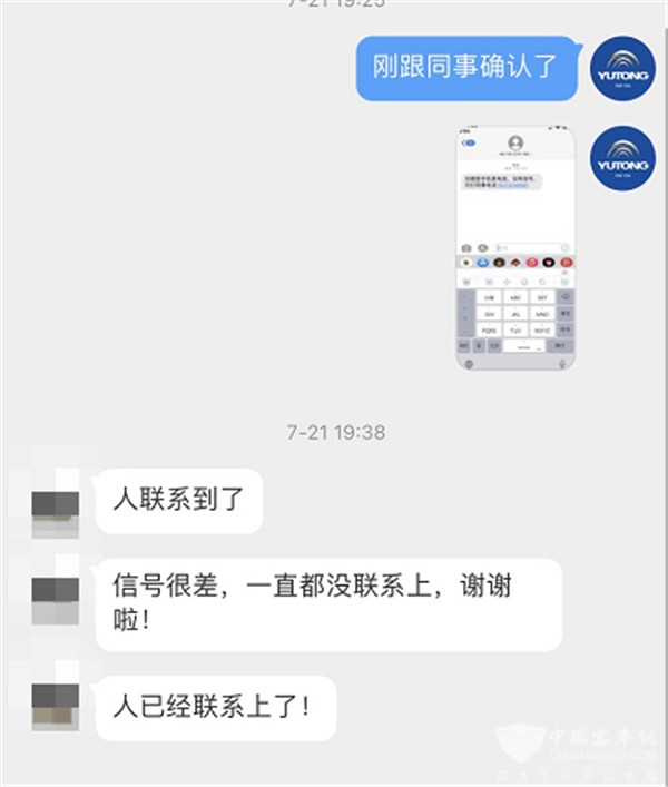 第二天,宇通客车售后服务人员便