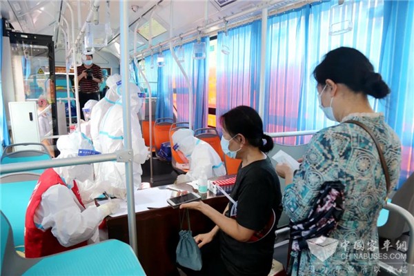 “公交车上也能做核酸检测了!” 2021年8月3日早晨,一辆正在常德公交服务的中车电动“新巴客”, 变身“核酸检测流动车”,奔赴常德市辖区内人口密集、老年人较多的小区……