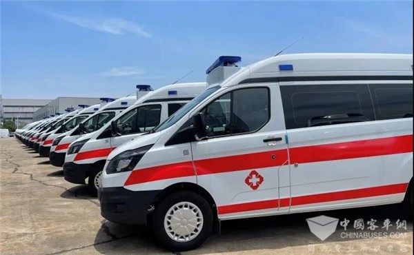 本次交付的负压救护车包含22台金龙金威海狮救护车及66台全顺V362救护车,负压救护车在救护车基础上进行专业改装,导入医疗舱配套设施、担架系统等医疗设施,实现病人的安全隔离和转运。