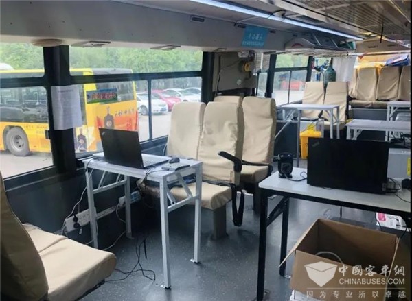 公交车内按照标准的疫苗接种点进行布局:每车配备14名专业医护力量,设有3个问询台、4个固定接种点、1个应急处置点,医疗物资一应俱全。车上还配备了4台专门储存疫苗的冰箱,保证疫苗储存温度在2-8℃的标准范围之内。接种人员实行上下通道分离,避免人群在接种车内交叉感染。