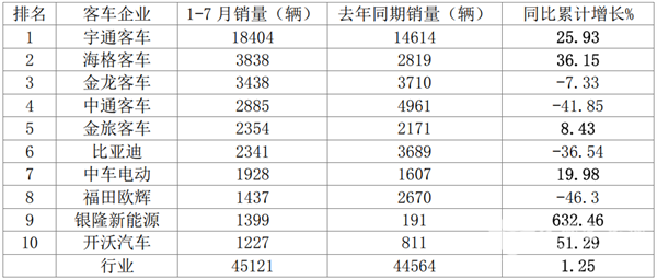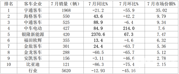 宇通强势领跑 中车环比大涨214% 银隆跻身Top5 7月大中型客车市场表现如何?