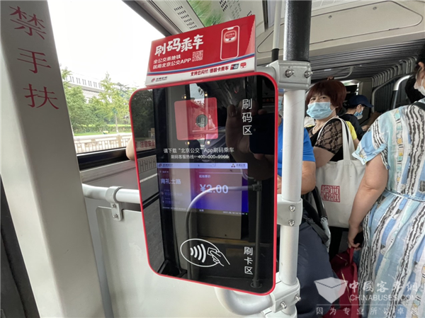 排队登车、购票扫码......虽然候车的乘客不少,不过宽通道、大容量的设计让公交依旧还有余位。记者在车辆中后段选了个座位落座,运转良好的空调隔绝了夏日的热浪,开启了一段舒适惬意的公交旅程。