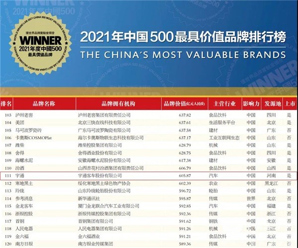 品牌建设方面,宇通客车在2021年荣登“中国500最具价值品牌”,品牌价值首次突破600亿,还成为迄今为止唯一获得“红点奖”的中国客车品牌,并相继荣获“制造业单项冠军示范企业”、“全国客车行业质量领军企业”等荣誉。