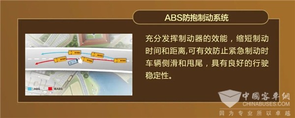 整车标配ABS防抱死制动系统,缩短制动时间和距离,可有效防止紧急制动时车辆侧滑和甩尾,具有良好的行驶稳定性。