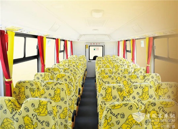 整车采用符合儿童人体工程学设计的儿童专用安全座椅,内饰采用环保防火材料,更有优化设计的软包护栏,防止学童在紧急制动时身体前倾受到意外伤害,低踏步入口和车门边扶手方便学童安全上下车。