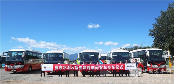 2021年8月26日,福田欧辉将一批BJ6816、BJ6126城间客车成功交付金隅冀东水泥旗下的唐山冀东水泥汽车运输有限公司(下简称“汽运公司”),投入企业日常通勤班车运营,为员工提供舒适、安全的通勤服务,进而感受提升员工幸福感。