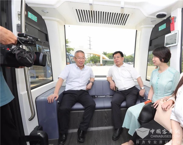 交流会后,福建省广播影视集团党组副书记、总经理庄志松受邀参观了金龙客车品牌文化展厅,试乘金龙阿波龙无人驾驶汽车等多项活动。
