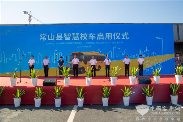 在启用仪式现场,常山县县长张少华,常山县副县长傅淑梅、姜光明,常山县人大副主任王生智,常山县政协副主席谢雨生,常山县教育局党委书记、局长李岳飞,常山县城市投资集团有限公司(简称“常山城投集团”)董事长方丽强,及当地交通运输局、财政局、应急管理局、交警大队等部门领导,共同见证这一历史性时刻。