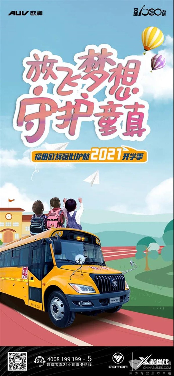 2021年9月1日,“万兽已经归笼”。全国各大校方、校车运营方以及福田欧辉也已完成校车的采购与部署工作。福田欧辉作为健康校车引领者,凭借性能出色、寿命长久、安全可靠的新一代健康校车已成为众多校方、校车运营企业的青睐,成为校车市场里的“安全方舟”。
