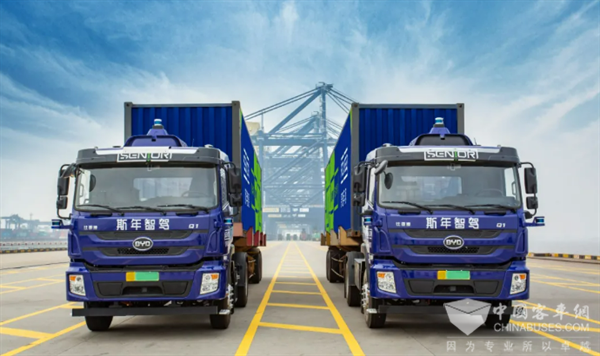 目前比亚迪已与相关合作伙伴紧密合作,将纯电动卡车率先在宁波大榭港、华为物流园(惠州)、深圳妈湾港等场景运行,通过和港口、园区的智能作业系统对接,实现云端平台监控、车辆调度、自动驾驶等作业,有效提高运输效率的同时,也大大降低人力成本。