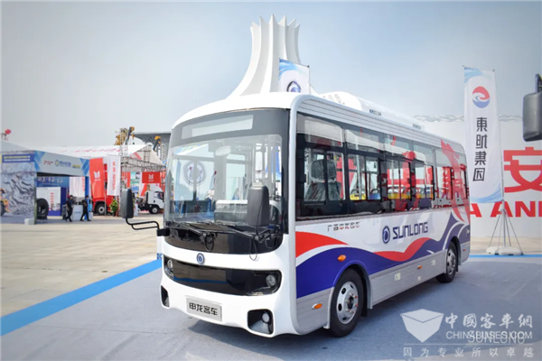 另一参展车型是广西申龙的新型产品HQK6885纯电动城市客车采用轮边驱动方式,采用低地板结构,车身内部设计更合理,满足超大承载,实现城市高峰时段的人流通行顺畅,更加注重驾乘体验,打造高品质舒适出行空间,通过结构优化、高强轻质材料应用,辅以相应的先进工艺来提升车身、电机、电池等轻量化水平, 同等载客量能耗降低15~30%以上,以更长的续航里程,满足安全、经济、可持续的公交运营需求。