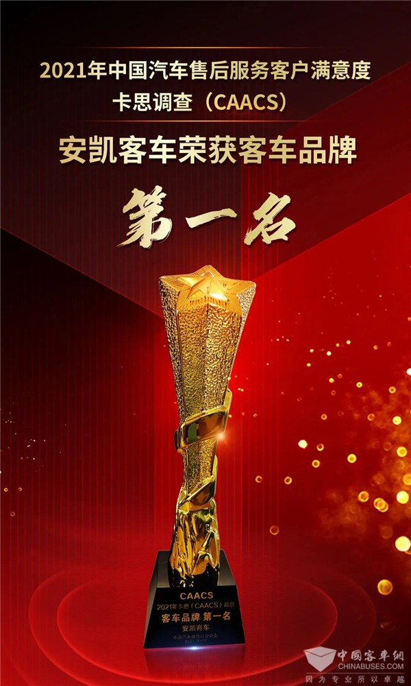 2021年9月17日,“2021年中国汽车售后服务客户满意度(CAACS)卡思调查结果发布会”在北京隆重召开,安凯客车以总分87.43分的成绩荣获售后服务客户满意度“客车品牌第一名”,充分彰显了安凯客车的企业实力和强大的售后服务保障体系能力。
