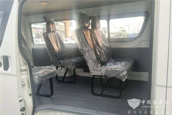 金龙凯锐6座拥有两种乘客区座椅布置,其中侧翻座椅状态可将座椅进行侧挂,较好的利用凯锐的乘客区空间。