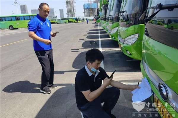 据组长张嵩山介绍,为提前做好全方位准备,宇通首批服务保障人员早在8月24日就已进场,并跟随全运会后勤组同吃同住,确保随时响应保障需求。而在服务现场,宇通保障团队更是每天在发车前和收车时对全车进行安全检查,其检查项目近20项。