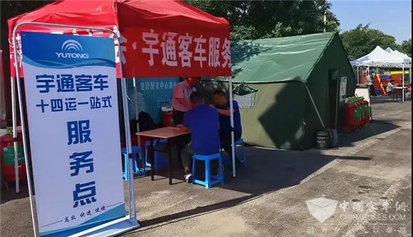此外,宇通还在全运会核心场站奥体中心杏园村停车场开设了“宇通客车一站式服务点”,成为了目前所有参与交通服务保障厂家中唯一一家开设服务点的客车企业。