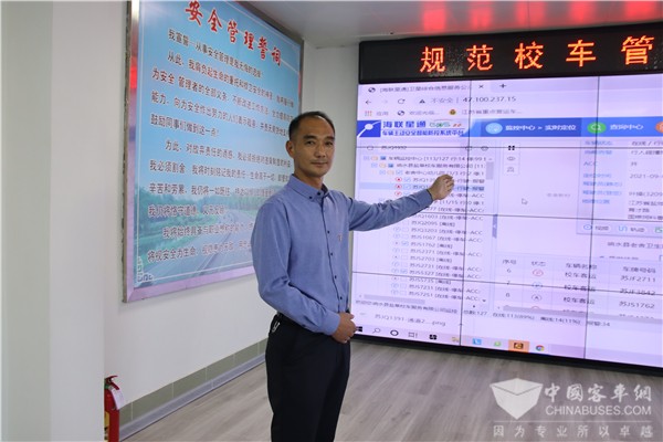 此外,为进一步保障校车安全有序运行,盐阜校车连续两年批量采购了近100辆新车,并加大了车辆安全配置的投入,成立了统一的校车监控中心,实时监控车辆运营线路、行车轨迹、车辆油耗、行驶车速等信息,全方位确保孩童出行安全。