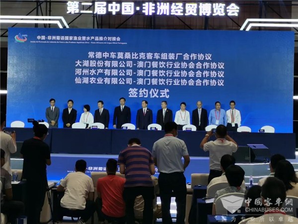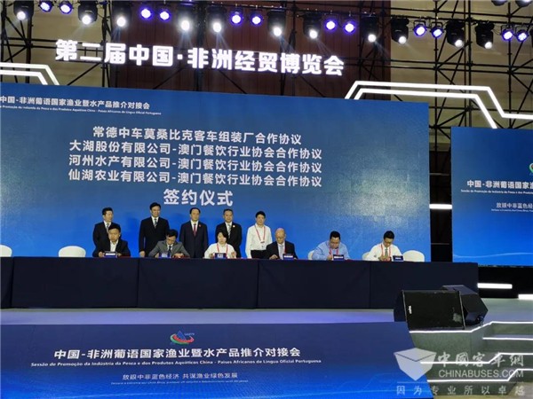 现场,中车电动与莫桑比克客车业务合作协议签订;旗下F12、C09NG两款车型组团亮相,一展中国智造风采。