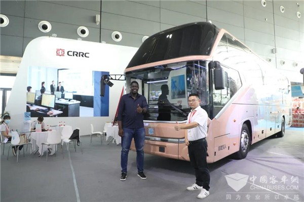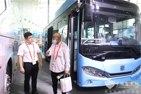 一位来自南非的嘉宾面露惊喜,走上展车详细了解,并称赞道:“这两款车,外观大气时尚,技术先进,正是我们‘梦寐以求’的客车!”