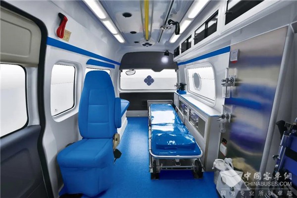 配备救护担架、氧气瓶、排气扇、消毒灯、对讲机等急救设备,可加装除颤仪,呼吸机,心电监护等全套抢救设备,为救援开启“加速度”,为患者的抢救争分夺秒。