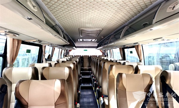 此外,在驾乘舒适性方面,中通世腾旅游大巴的客舱全部采用绿色环保装饰材料,可调节的高档商务座椅乘坐舒适、包裹感强,很大程度上减少了旅途的颠簸感,搭配雅致阅读灯、静音空调、USB充电接口等人性化配置,让人一上车即可享受到全身心的放松。