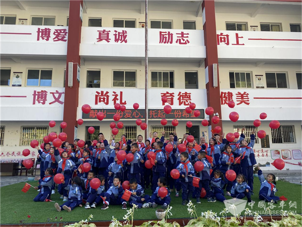 恰逢国庆前夕,南京依维柯志愿者们与全校师生一起合唱《歌唱祖国》,用嘹亮的歌声给祖国母亲献礼,大家还一起放飞了五星红旗气球,气球带着大家的祝福和快乐飞向天空,一颗颗爱国的种子在孩子心中生根发芽。