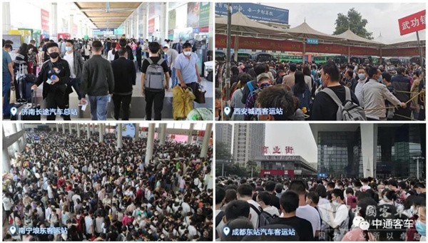 图:“十一”期间,随着旅游产业的复苏,各大客运站也迎来了久违的繁忙景象。