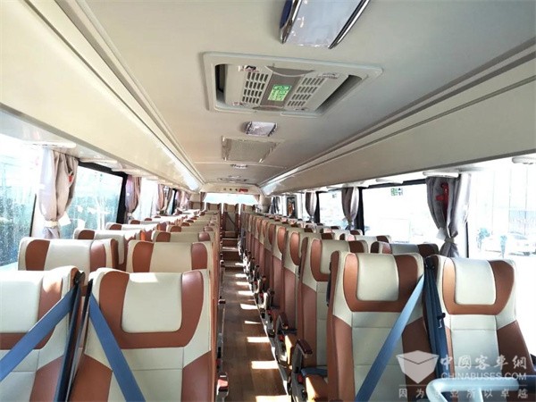 欧辉BJ6126城间客车配备前后双盘、ABS、ESC、胎压监测及报警、多路监控、乘客安全带提醒等诸多主动安全配置,同时车辆采用高强度钢打造的全承载车身,安全性能出色。此外,车内还配备安全门、外推窗、电磁击窗器等丰富的安全配置,可谓是从内到外构建出整套安全体系。