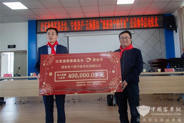 作为捐赠方代表,比亚迪客车销售事业部总经理郭录军表示,作为中国制造业的一个代表,比亚迪承担起经济、社会和环境可持续发展责任的同时,一直致力于慈善公益事业,用星星之火,点亮梦想。少年强,则国强;少年智,则国智。在比亚迪股份有限公司执行副总裁李柯女士的带领下,比亚迪慈善基金会携手宁泉资产共同捐赠的阅读助学项目正式在云南蒙自落地启动,将为蒙自的孩子们提供高品质的阅读环境,全面滋养孩子们快乐成长。