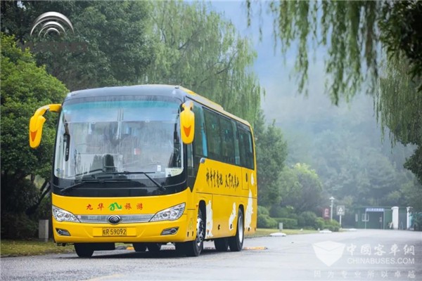 安徽九华山旅游发展股份有限公司(简称“九华旅游”)副总经理汪晓东介绍:“九华旅游成立于2000年12月,2015年在上交所发行上市,现有分子公司20余家,主营酒店、索道缆车、旅游客运、营销平台、旅游景区五大板块业务,构建了完善的旅游产业链。其中,九华山客运公司拥有九华山风景区专营资质,主要从事景区内交通和省际旅游交通业务,年运送旅客近500万人次。由外事车队、观光车队、居民公交、学生接送公交、景区公交、VIP车队组成。当前,九华旅游共有营运车辆141辆,宇通车辆占比达48%。”