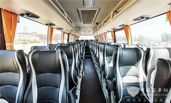 座椅是客车内占据空间最大也是最能体现内饰风格的配置,新凯歌改变了原有稳重的商务范儿,采用了赛车风格的座椅,整体配色也很跳跃,这一大胆的设计赢得了各方认可。新凯歌的座椅采用带状造型,富有包裹性的设计贴合人体坐姿,复合材料的面料既显档次又不失舒适,相比两轴车更宽松的座椅间距和更多的座位数,符合了当前很多从事旅游业务客户的需要。