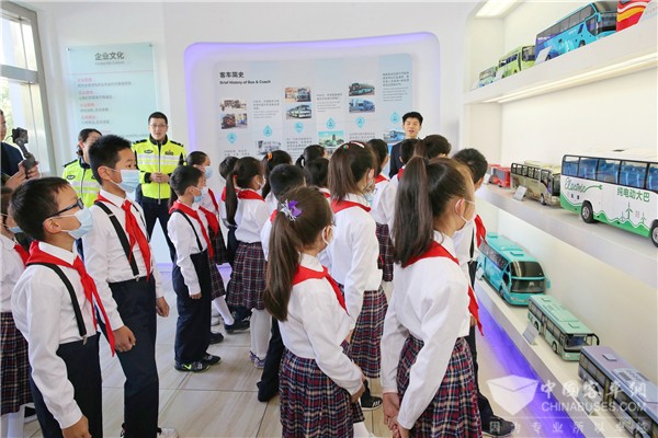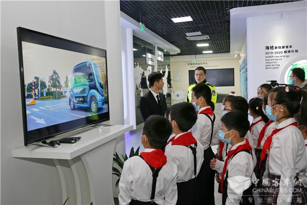 上午9:30,学生们在三位交通干警的带领下走进海格客车展厅,一排排客车车模引起了学生们强烈的兴趣,他们在讲解员的带领下知道了中国客车的发展历程,熟悉了校车、公交车、物流车、房车、公路客车等产品,并通过车辆模型了解到了更多客车的安全设施。妙趣横生的公交黑科技演讲、安全知识问答、“醉酒”小游戏、身临其境的3D未来交通视频,将趣味游戏、知识问答、未来科技、交通安全完美融合在一起,让学生们对于未来安全交通世界有了一个直观的感受。参观完海格展厅后,学生们走进斯堪尼亚•海格豪华房车,惊叹于车内宽敞的空间和豪华的内饰。当学生们知道了举世瞩目的港珠澳大桥上,有120辆斯堪尼亚•海格豪华客车作为穿梭巴士,服务往返香港、澳门和珠海的乘客,他们不由地连连说出“好厉害呀!”,“我也想坐这种车去港珠澳大桥!”