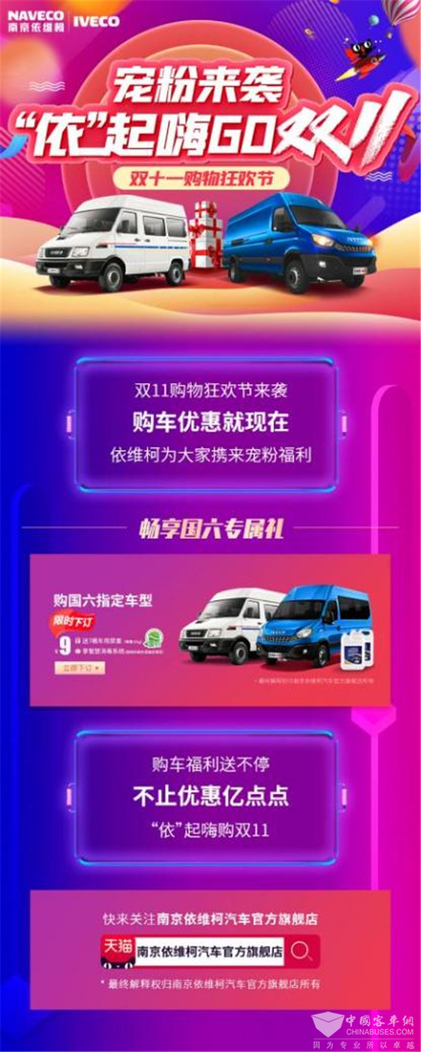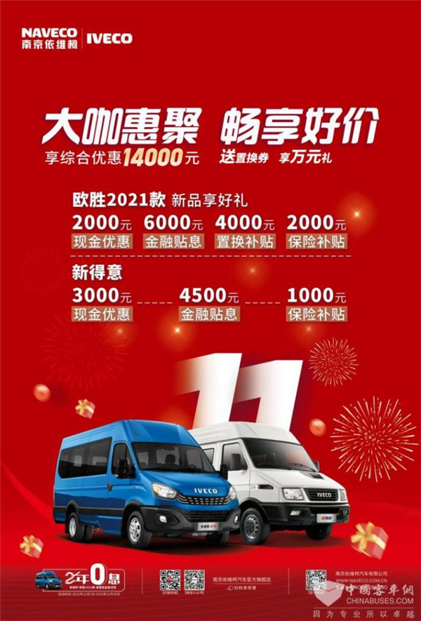综合优惠达14000元! 南京依维柯邀您“钜惠双11 依起疯狂购”
