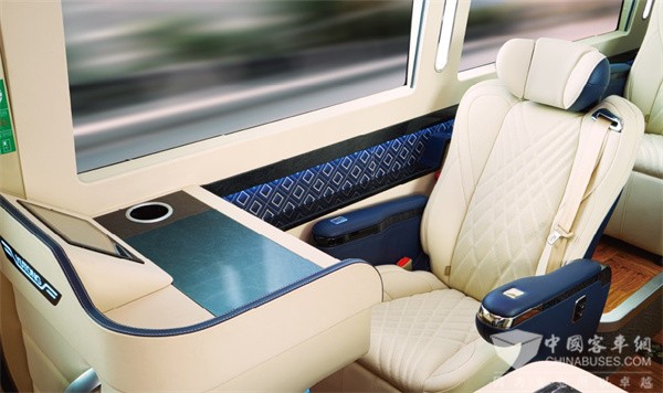 宇通T7星河版配置6向电动调节航空座椅,且侧围护板及靠背均设置备用控制键,同时具备高级调档通风加热功能及记忆复位功能,并支持5种按摩模式,诠释贵宾级乘坐体验。