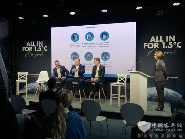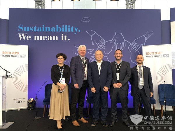 比亚迪欧洲有限责任公司商用车业务中心总经理何一鹏(左三)参加由气候组织举办的RouteZero圆桌论坛
