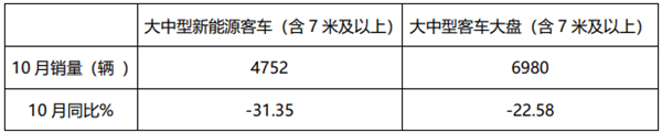 10月新能源客车销量同比与客车大盘比较(数据来源:中国客车统计信息网):
