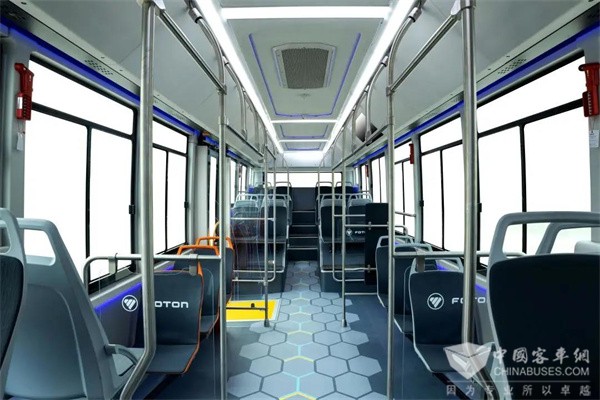 BJ6129搭载纯电冷暖一体化空调,在低温环境下也能保证快速启动与高效运行,在冬季作为暖风系统为车厢提供热量,平顺柔和的暖风自车厢两侧空调口徐徐送出,营造出暖意融融的乘车空间。另外,欧辉纯电冷暖一体化空调系统具备数显自动温控、故障自动诊断等诸多智能管理功能,让温控更加自如。