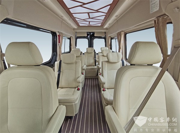 瑞通V59是中通客车顺应市场发展趋势、挖掘轻型客车市场需求,特别研发推广的一款高端定制宽体轻客,拥有常规动力和纯电动两种车型。可根据客户需求定制6-14座产品,其中7.5米版本可实现10-20座布局,充分满足不同运营环境需求。瑞通V59的上市,为高端出行、定制化出行提供了更加多样化的选择。
