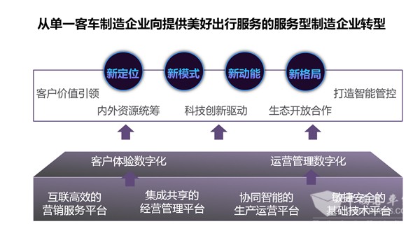 金龙客车的数字化转型,是从单一客车制造企业向提供美好出行服务的服务型制造企业的转型,打造金龙数字化平台——金龙云创数字工厂,围绕新定位、新模式、新动能、新格局的“四新”战略,达成“制造即服务”,开源共创不设限,为企业数字化转型战略赋能。