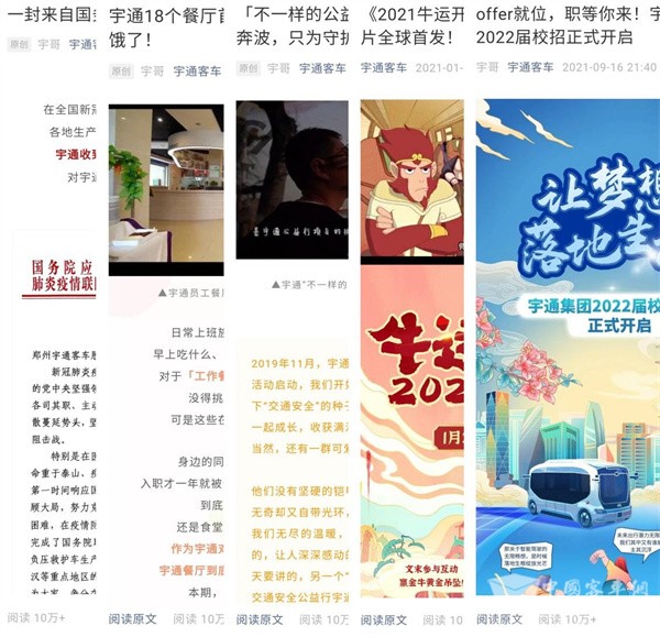 助力品牌传播,让宇通客车更好地“走出去”,是建设新媒体矩阵的初心也是新媒体矩阵的作用。针对“卡塔尔交车”“小宇荣获红点奖”等宇通海外大事件的传播,宇通客车进行了全平台、线上线下多渠道推广,将宇通的声量传播到更远的地方;同时,为了让外界更好地了解宇通及宇通的产品,宇通客车官方微信策划发布宇通餐厅、公益行、挑战吉尼斯纪录等多题材文章,其中多篇阅读量超过10万,为外界了解宇通提供了方式和渠道。