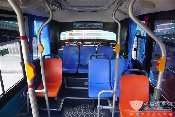 值得一提的是,清源在有限的承载空间内也将人性化做到了最好。车身侧面的玻璃车窗上安装有实时公交电子显示屏,乘客可以根据电子显示屏里面的信息,看到车辆所在的位置以及下一站公交站点等相关内容;车内爱心座椅旁均设有usb充电接口,若乘客携带的手机等电子产品电量不足,便可以实时充电。