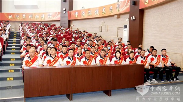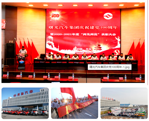 为上市公司发展持续注入“红色动力”,并使这一“红色动力”始终指引企业方向,是曙光汽车集团始终坚定不移的方针之一。2021 年 7 月 1 日,在中国共产党成立 100周年之际,曙光汽车集团庆祝建党 100 周年暨 2020—2021 年度“两先两优”表彰大会在激昂的 《没有共产党就没有新中国》 合唱中拉开帷幕。大会对曙光汽车集团先进党组织、先进党小组,优秀共产党员、优秀党务工作者进行了表彰;举行了预备党员入党宣誓仪式;优秀共产党员代表向全体员工宣读了倡议书,号召全体员工为全面完成 2021 年度经营工作目标努力奋斗,向建党百年献礼。“两先两优”是曙光汽车集团坚持了数年的党建品牌活动,通过组织党员紧紧围绕生产经营建功立业,树立先进典型,将“红色基因”代代相传。