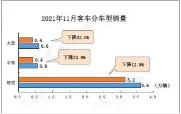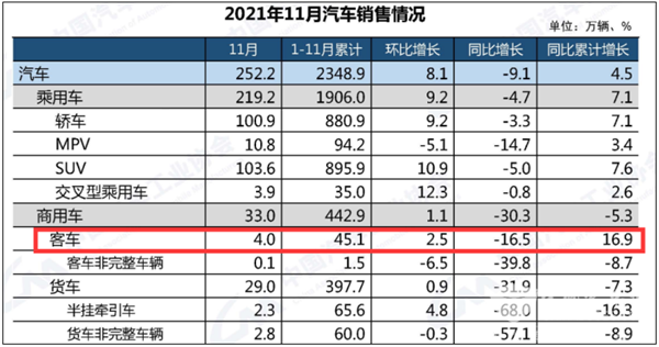 根据中汽协数据,2021年11月大中轻客车销量、同比: