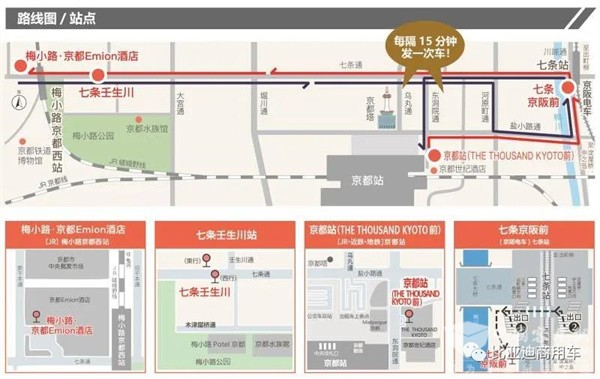今年2月,三方达成了合作协议,未来,京阪巴士与关西电力计划在京都著名的观光公交环线(京都站-七条京阪前-梅小路·京都Emion酒店)上,对此次投入运营的4台比亚迪J6巴士进行为期五年的示范运行。
