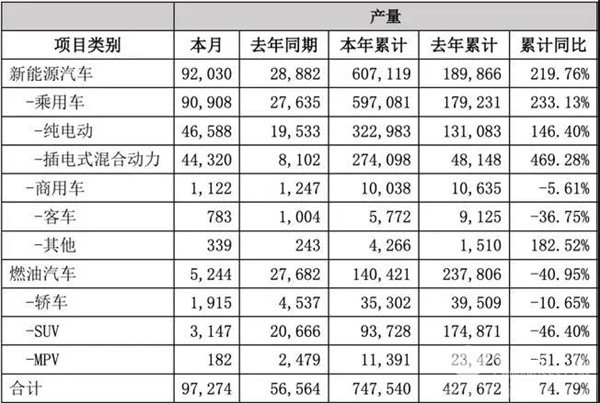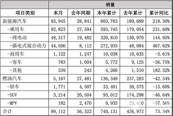 快报显示,2021年12月份,比亚迪共销售新能源汽车93945辆,同比增长225.73%;累计销售新能源汽车603783辆,同比增长218.30%。