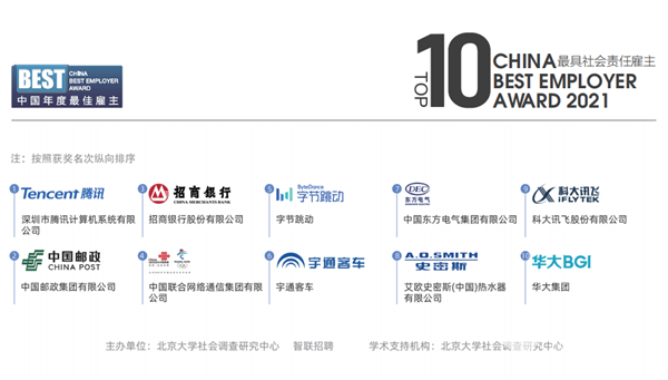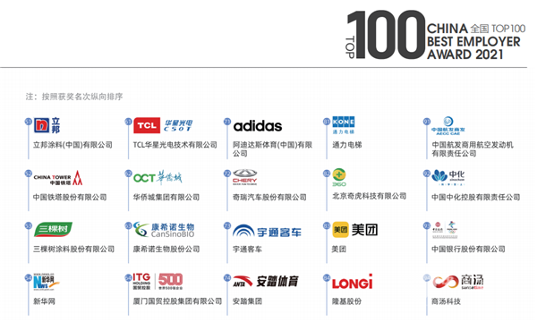“ 2021年中国年度最佳雇主全国 TOP100 ”