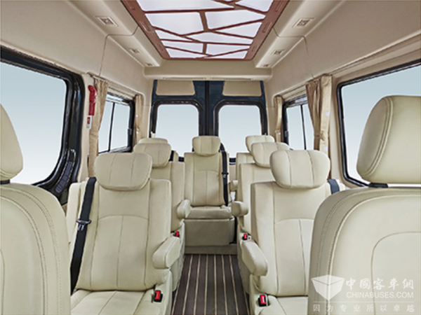 瑞通V59的主要目标市场,就是为了服务定制化商旅出行。其在车辆舒适性、可靠性等方面可谓是下足了“功夫”。科学空间布局,宽敞舒适,人体工学座椅,辅以典雅氛围灯布置,打造全方位乘客舒适体验。搭载潍柴(RA428)黄金动力链,配备智慧运营辅助系统,以及360度全景环视系统、车道偏离预警系统等安全辅助驾驶系统,还可实现远程OTA升级…品质之外,更保安全无忧运营。