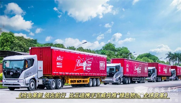 4月13日,比亚迪与百威(中国)集团正式签署战略合作协议,百威将率先采购首批比亚迪纯电动牵引车Q3,后陆续投运佛山、唐山、武汉等多地园区。此次比亚迪携手百威将零排放、无污染的新能源技术应用于啤酒运输,以国际化企业的社会责任感与担当汇聚可持续发展的强大合力,共同推动全球绿色物流运输体系建设,促进行业乃至整个社会的绿色低碳发展。